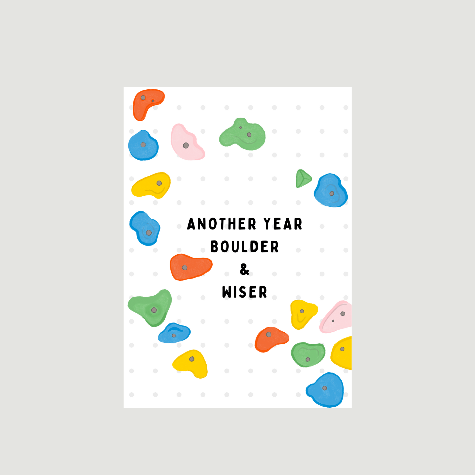 Another trip around the sun, another V-point on the scoreboard. Another year boulder and wise! Celebrate your belay buddy’s Birthday with this climbing-themed card.